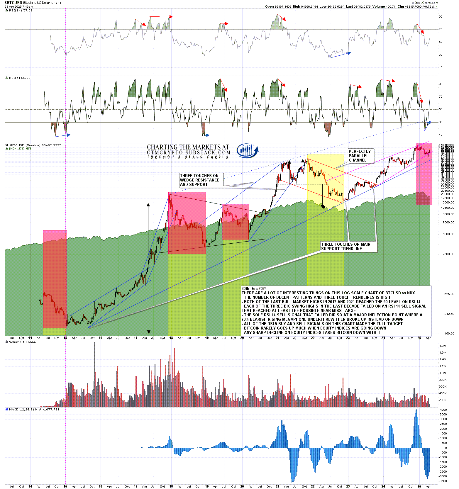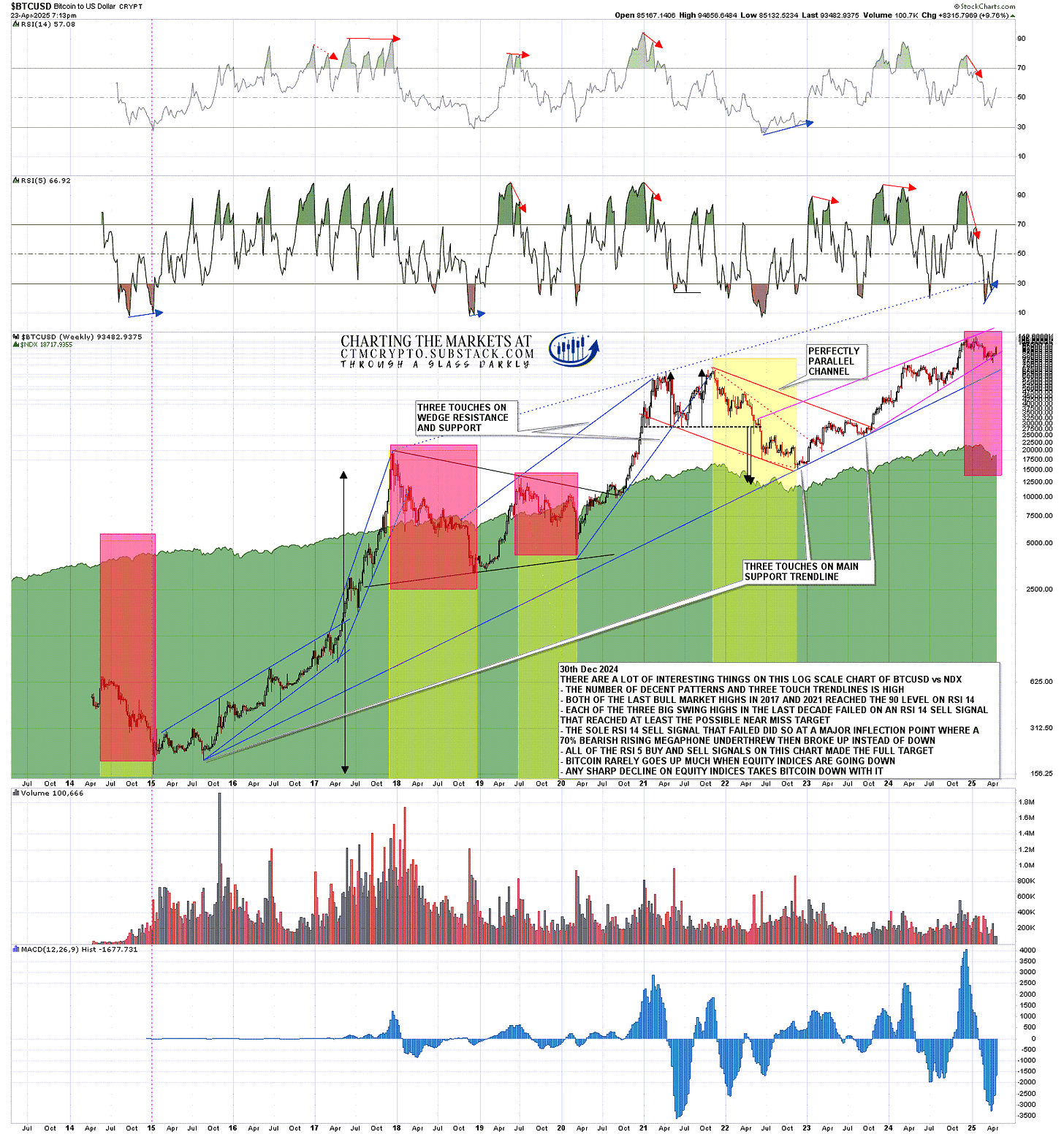 As I have been since the start of 2025 I’m still leaning on the bigger picture towards a weak first half of 2025 and new all time highs later in the year, very possibly as a topping process for a much more significant high. One way or another I think we’ll be seeing lower soon and I’m not expecting this to be a good year for US equities, not least because both of the last two years have been banner years for US equities. A third straight year of these kinds of gains looks like a big stretch. I could of course however be mistaken. UPDATE 11th March 2025 - I am wondering if this may be a bear market that dominates the whole of 2025.