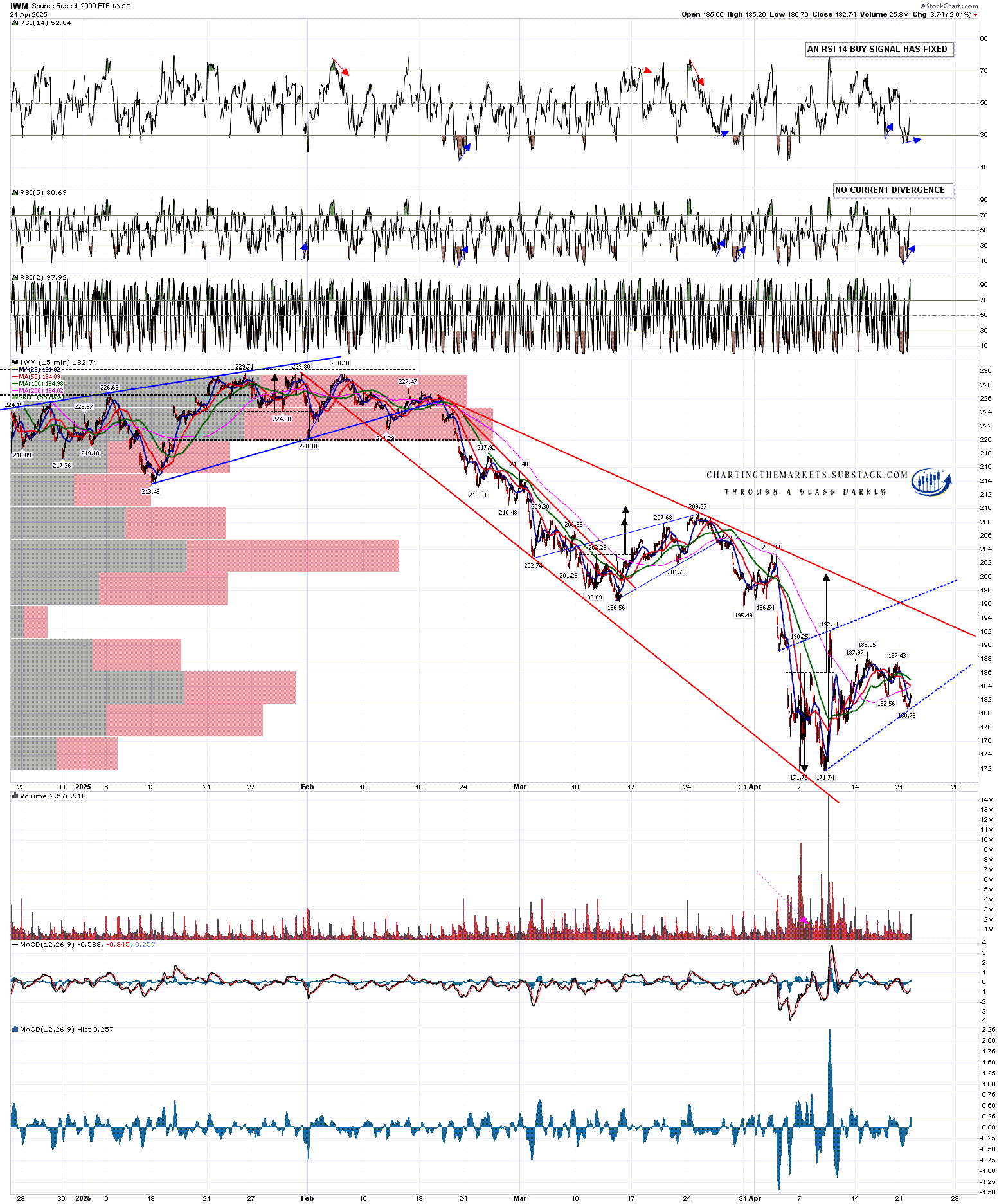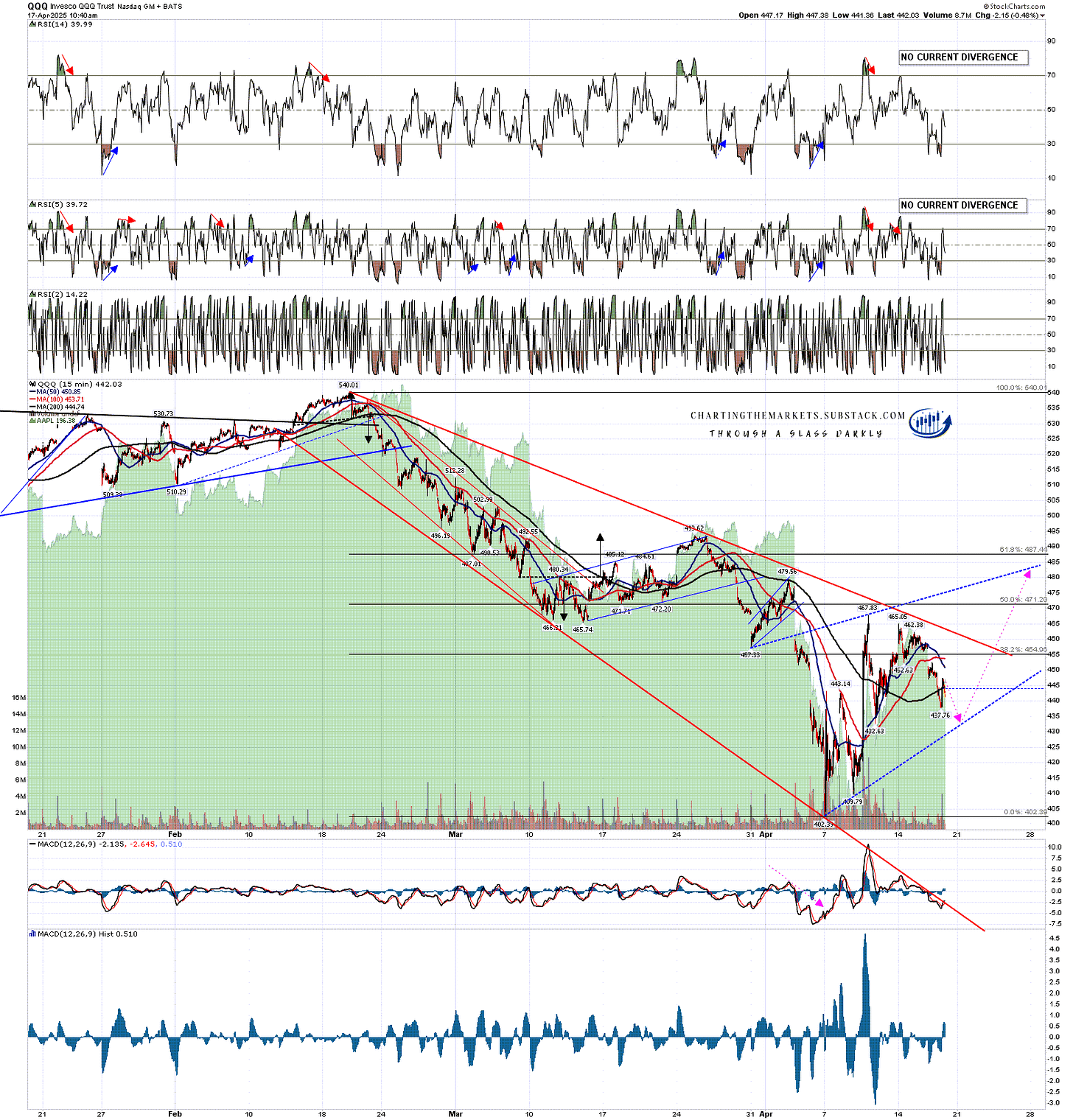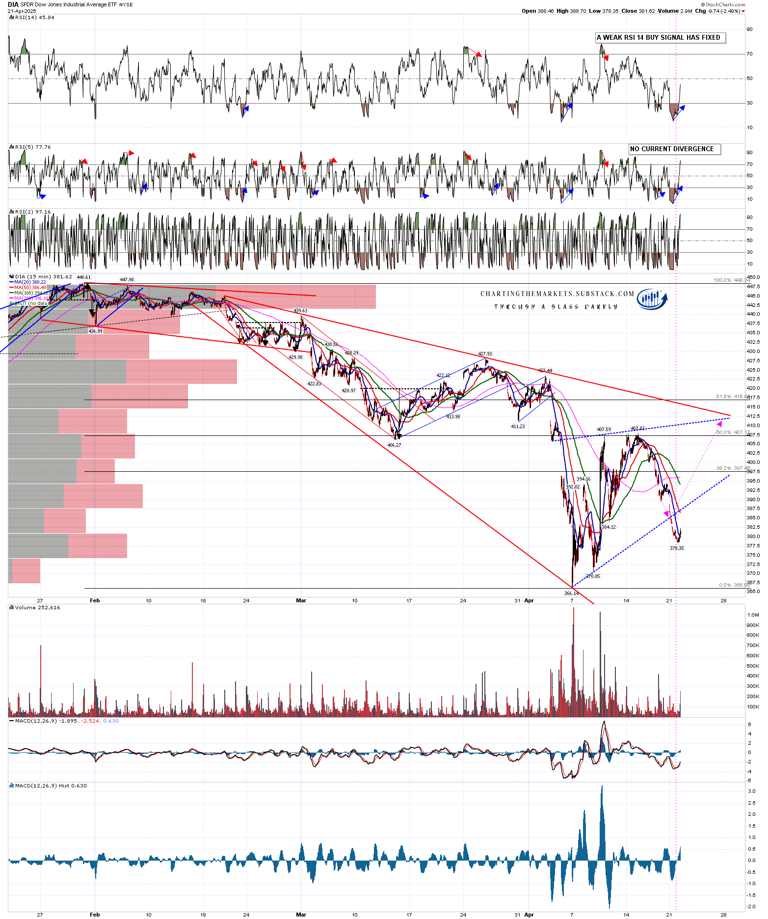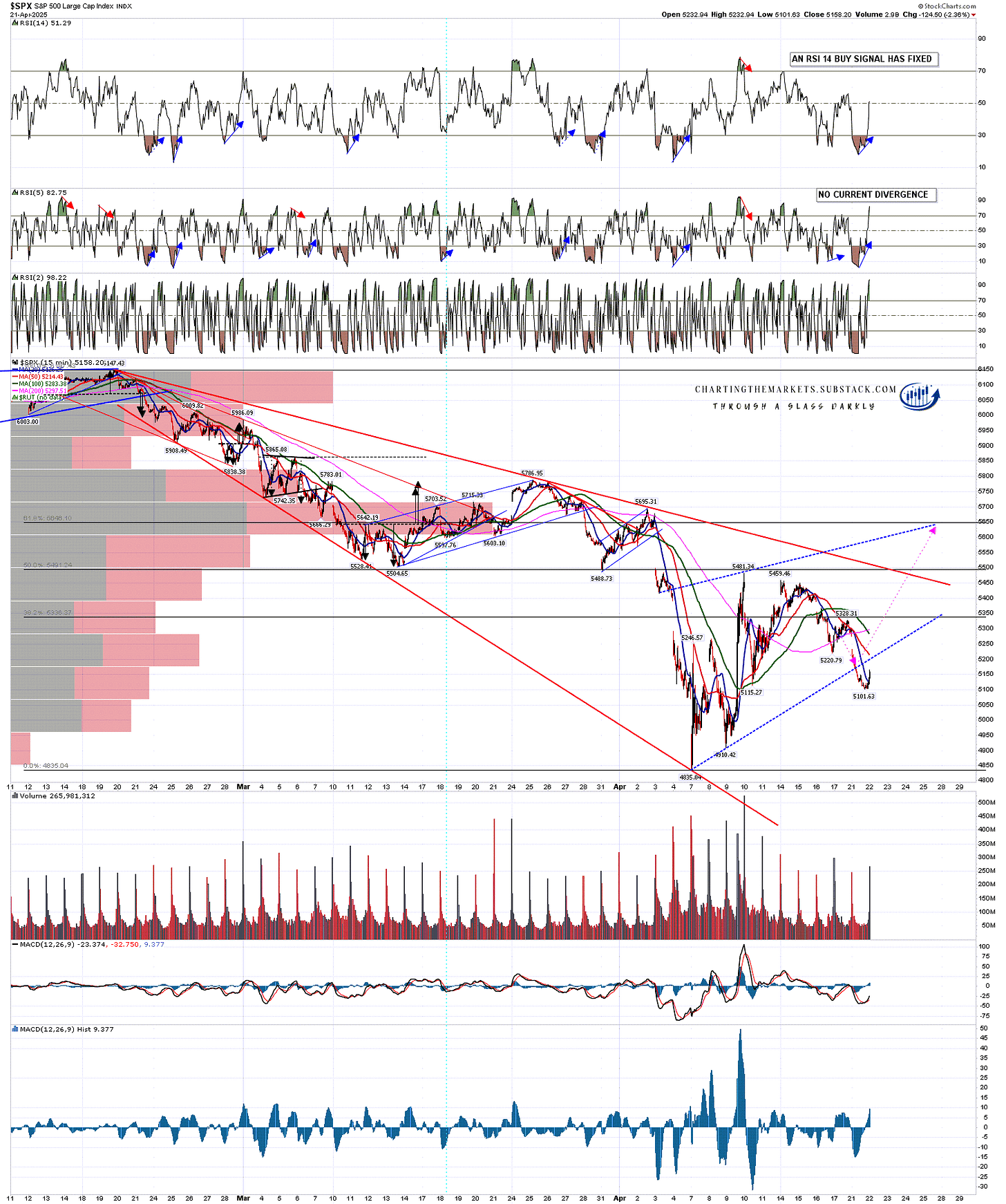 I published a post on Tuesday 1st April on my bigger picture substack arguing that tariffs would likely go ahead, that the odds of seeing a serious bear market this year were now high and that a full market crash this year was now potentially on the cards. IWM was already in technical bear market territory (decline of over 20% from high), SPX and QQQ reached the 20% level late last week and, at the low yesterday, DIA is currently down 18.383% from the high. I then published another post on Tuesday 1st April on my bigger picture substack looking for a downside target on SPX at 5100, and that was reached on Friday 4th April.