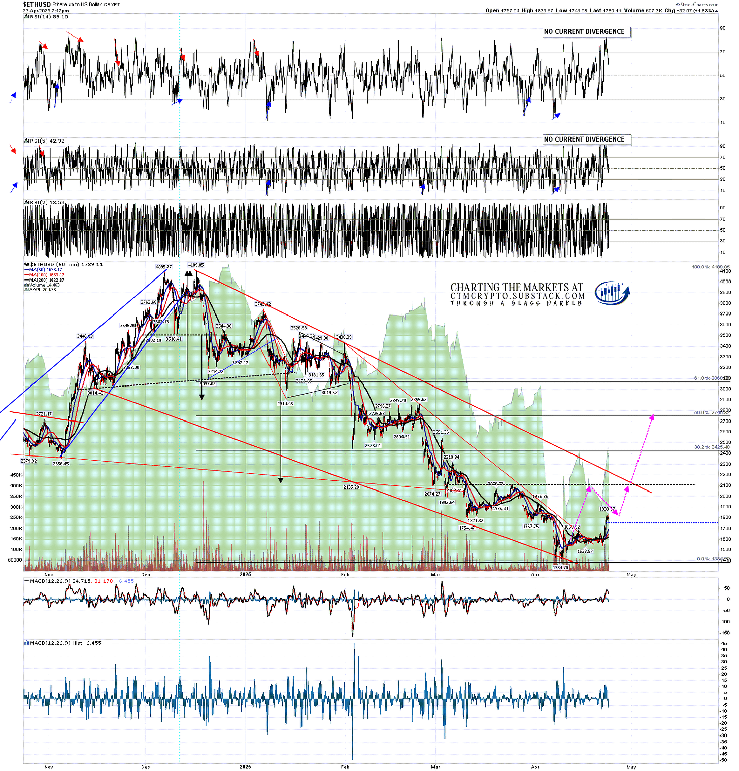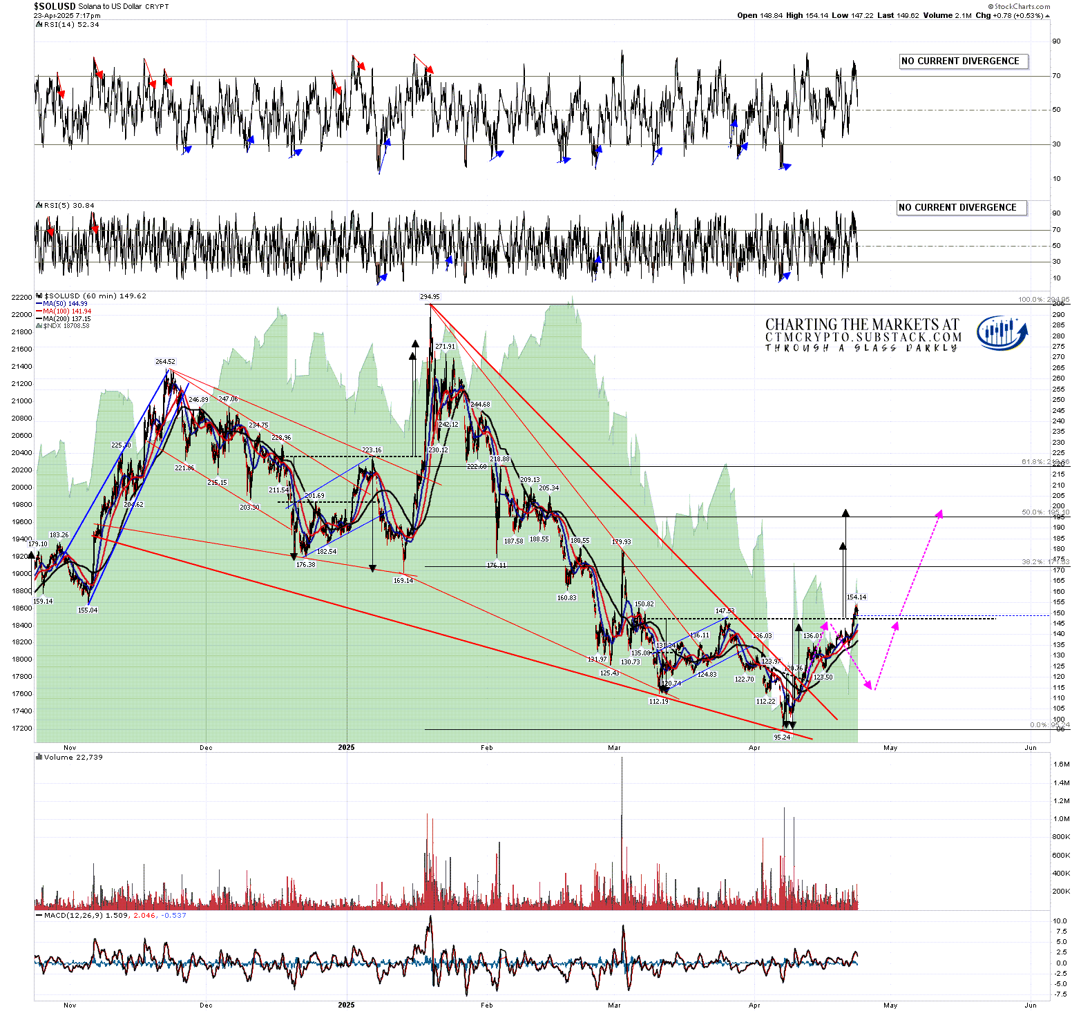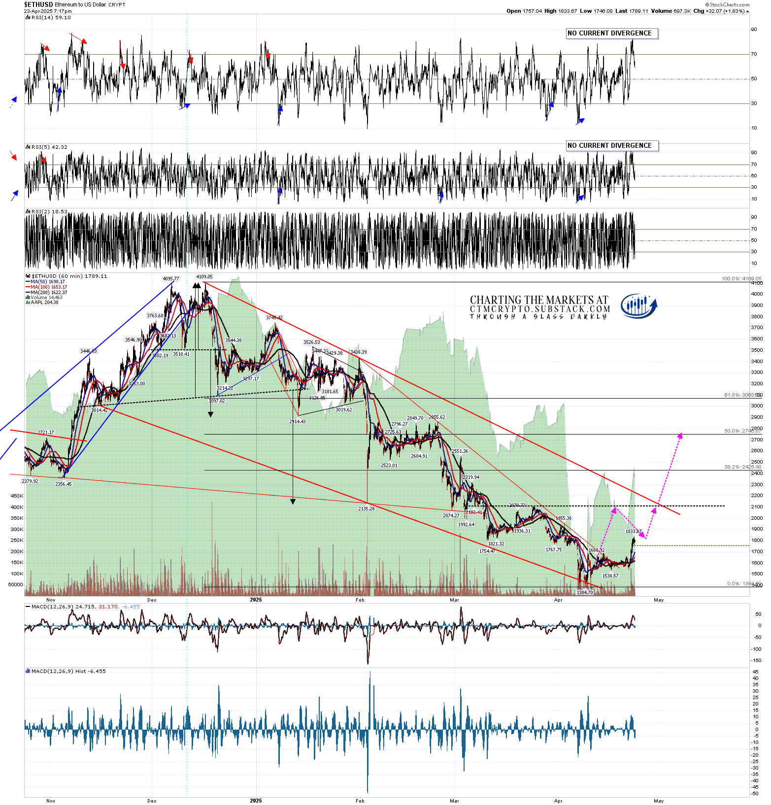 More on that after this next chart, and I am still liking this rally as a bear flag rally at the moment, but I have added another arrow to the chart below for the possibility that this possible H&S finishes forming and breaks down, and then rejects back into the all time high.