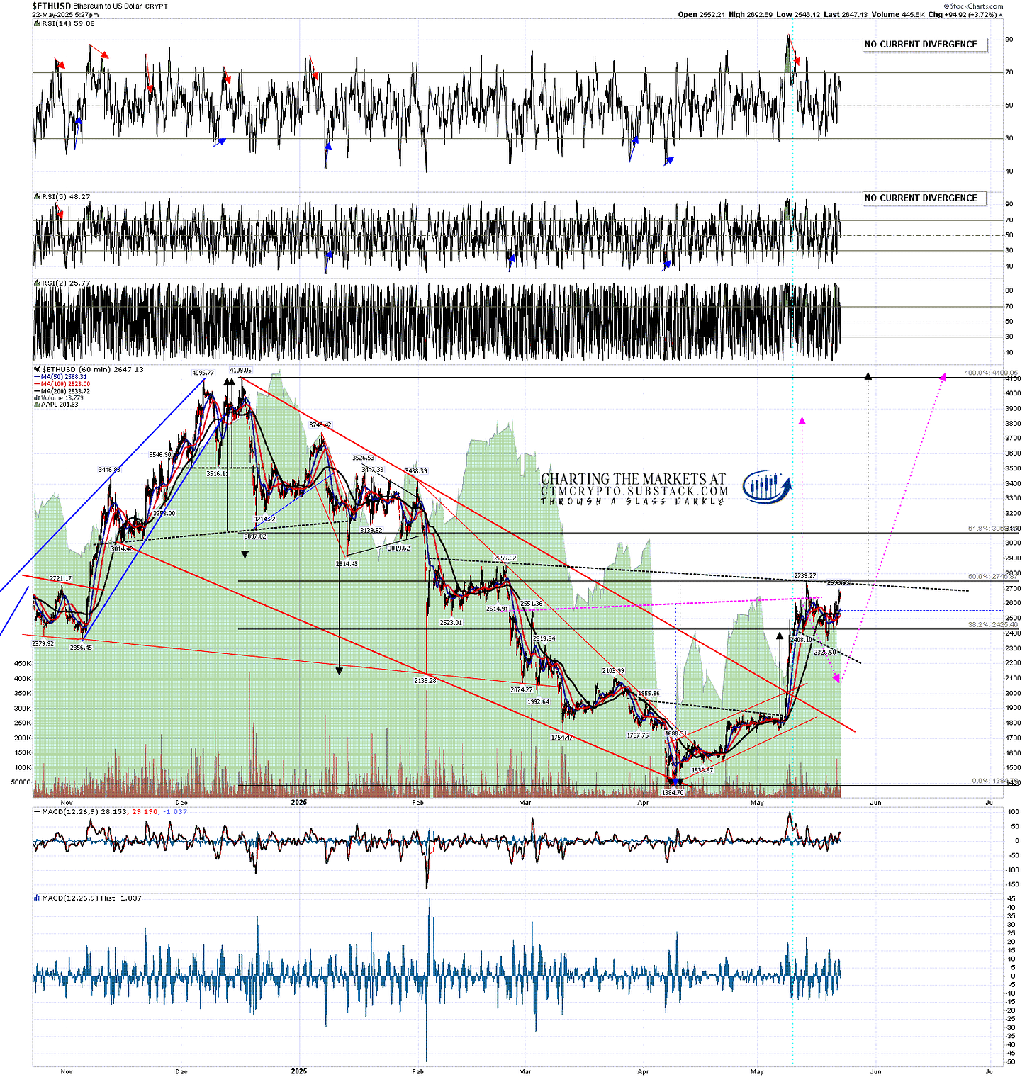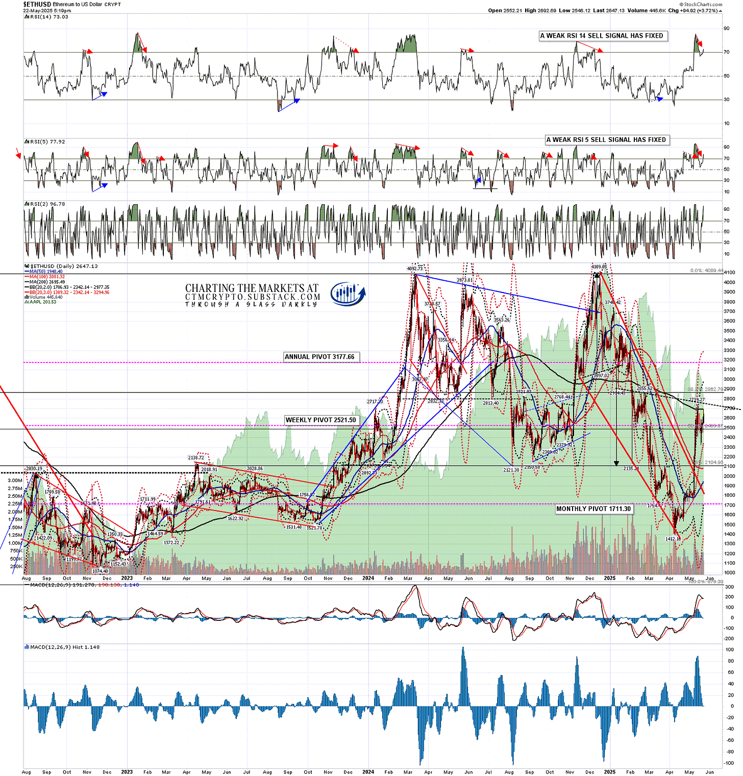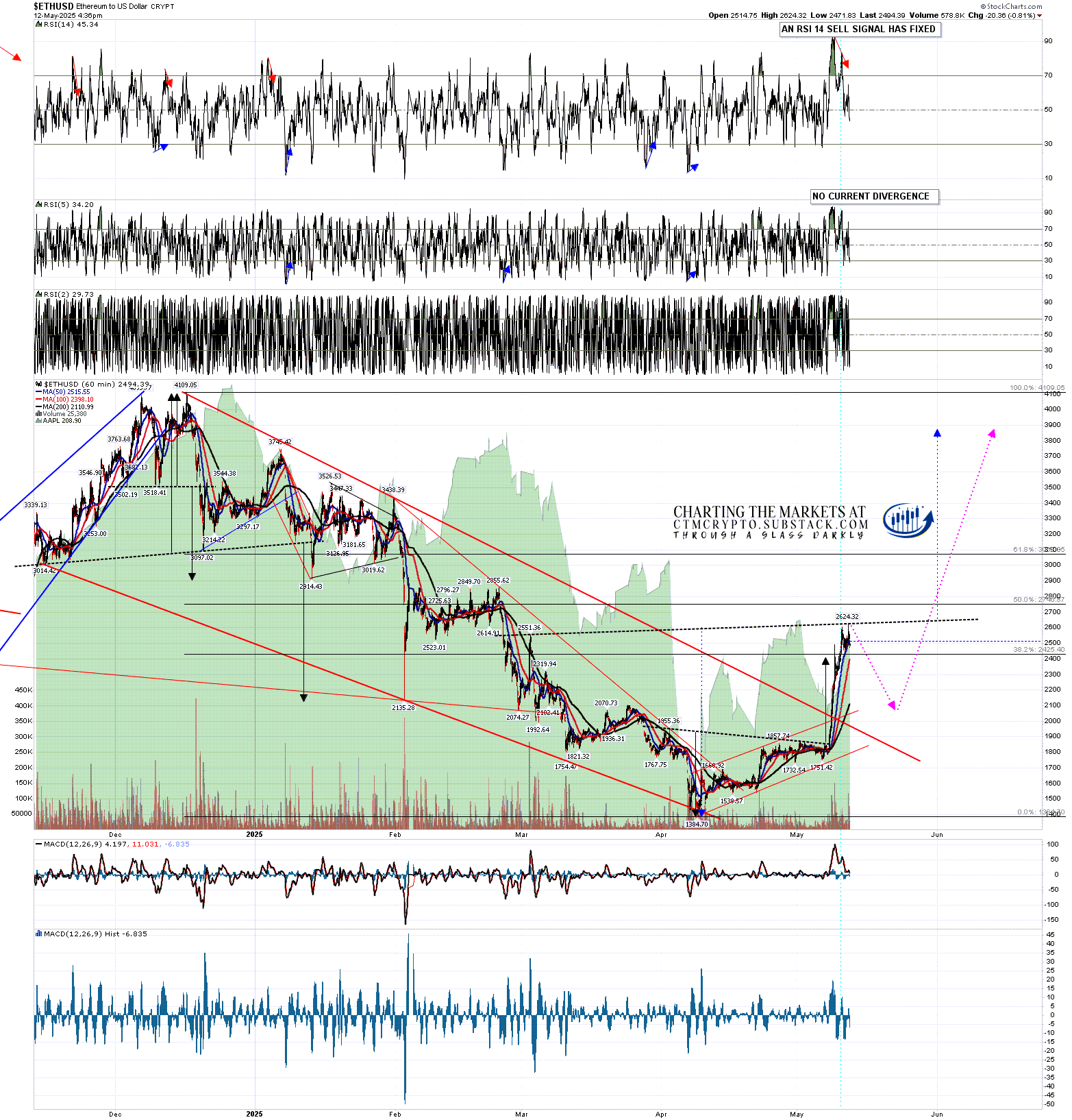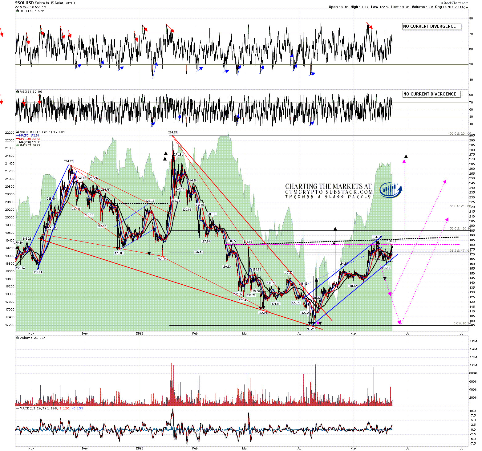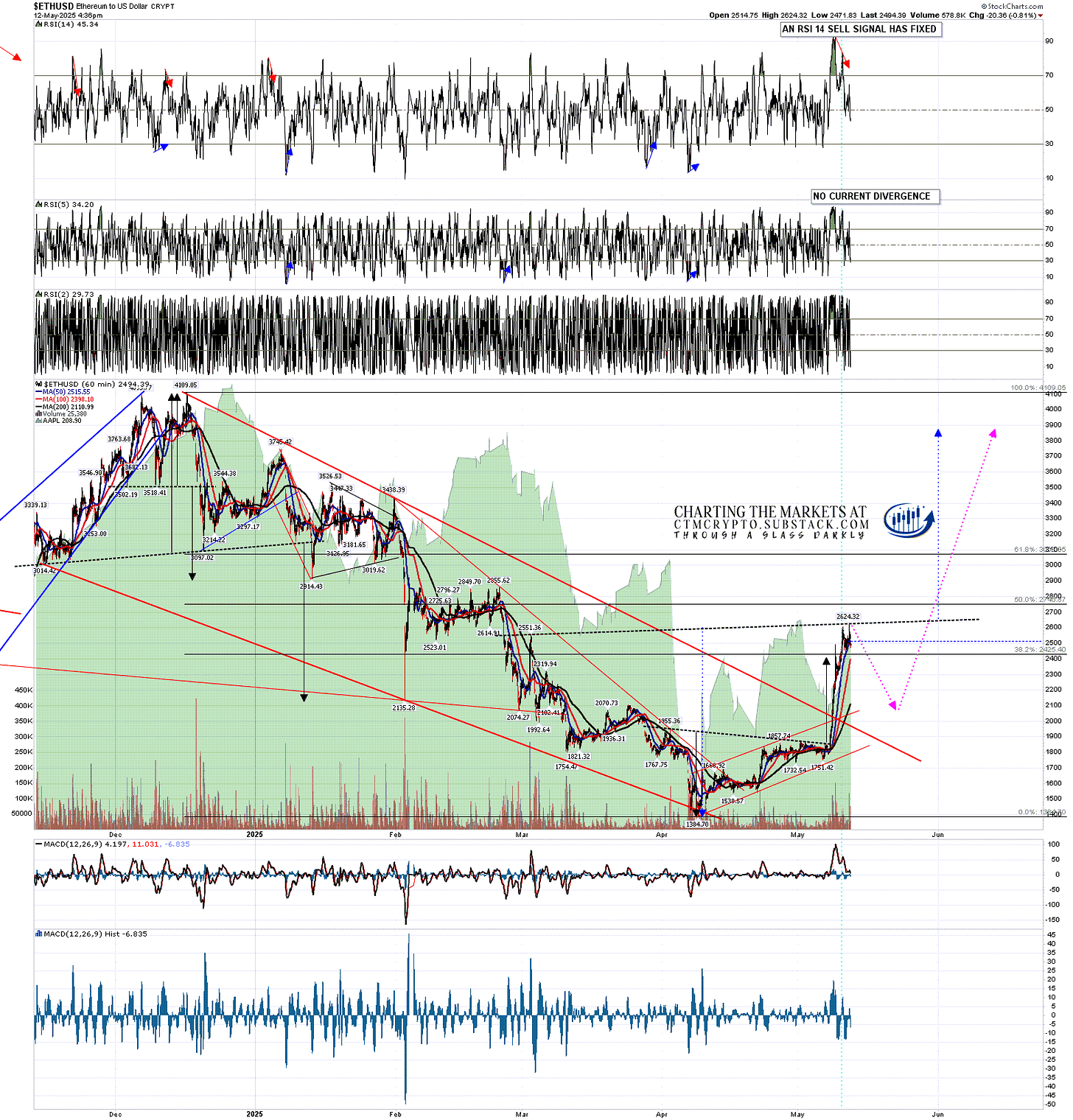 The other thing Trump mentioned this morning was a 25% tariff on iPhones not made in the USA, which I assume would be all of them. This seemed a strange one and he might just have woken up on the wrong side of his random number policy generator but it did remind me that I emailed out an AAPL weekly chart as my Chart of the Day for my substack subscribers earlier this week noting that the arrows I drew on this back in early April to show a possible very large H&S forming are still looking pretty good.