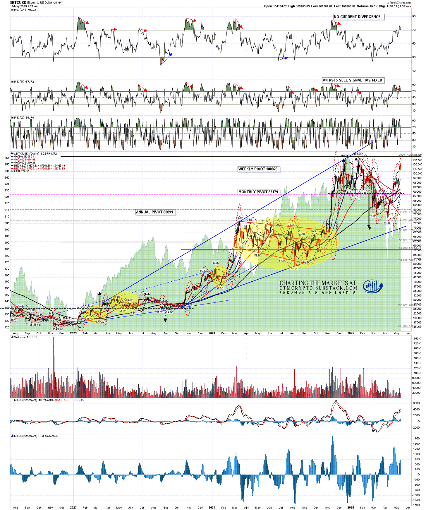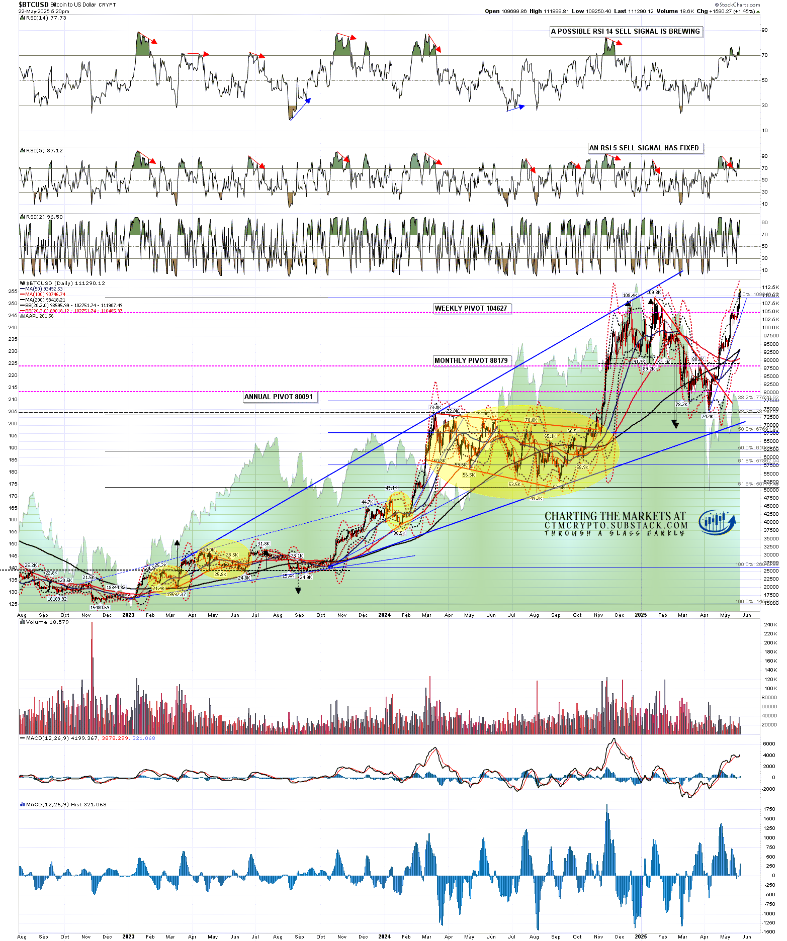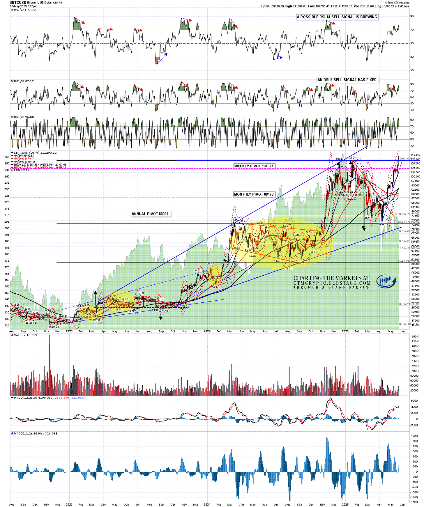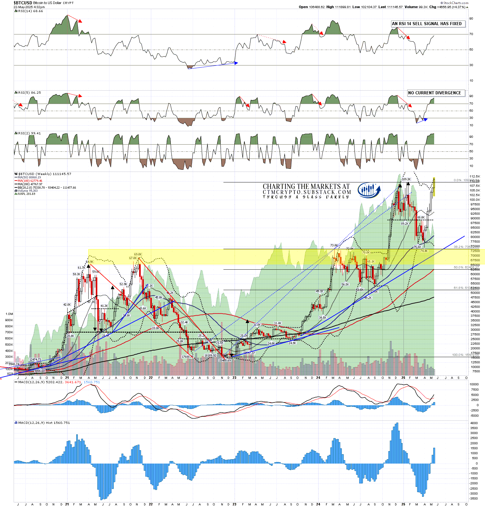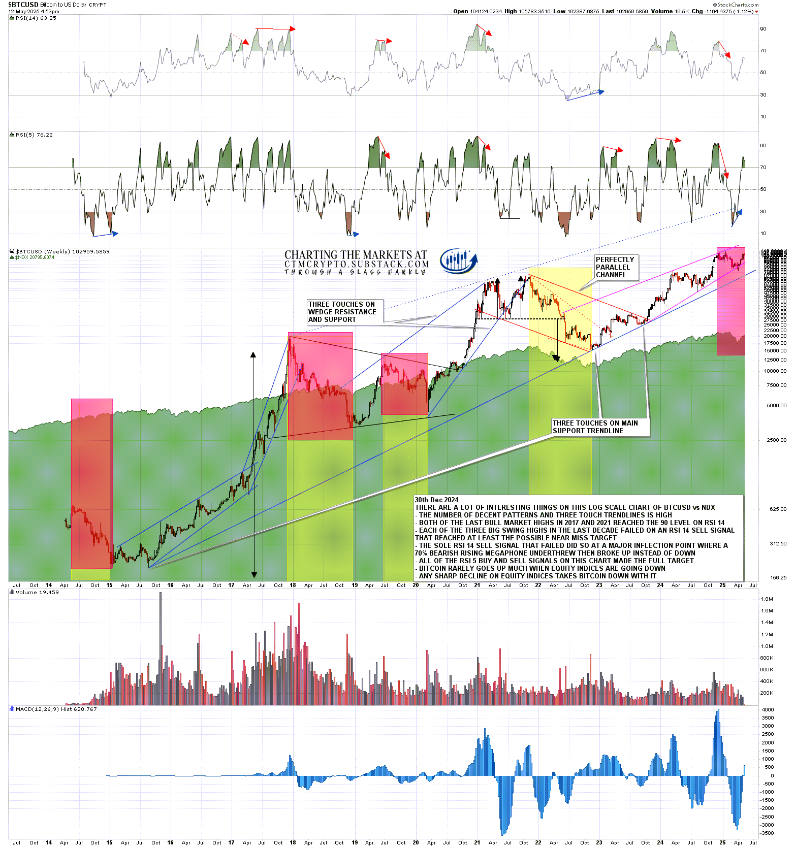 As I have been since the start of 2025 I’m still leaning on the bigger picture towards a weak first half of 2025 and new all time highs later in the year, very possibly as a topping process for a much more significant high. One way or another I think we’ll be seeing lower soon and I’m not expecting this to be a good year for US equities, not least because both of the last two years have been banner years for US equities. A third straight year of these kinds of gains looks like a big stretch. I could of course however be mistaken. UPDATE 11th March 2025 - I am wondering if this may be a bear market that dominates the whole of 2025.
