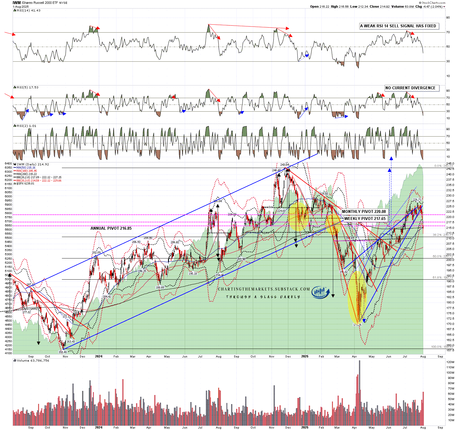 In my post on the morning of Friday 1st August I was looking at the first real signs of weakness on the US equity indices since the April low after the strong breaks of the daily middle bands on DIA and IWM on Thursday, and saying that confirmation was needed with further breaks of the daily middle bands on SPX and QQQ.