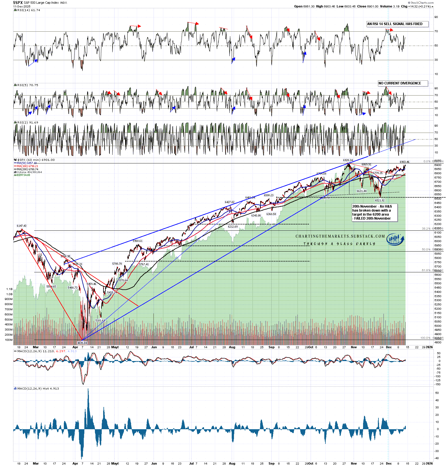 There is an hourly RSI 14 sell signal fixed though that could also fail as equities trickle higher towards Xmas.