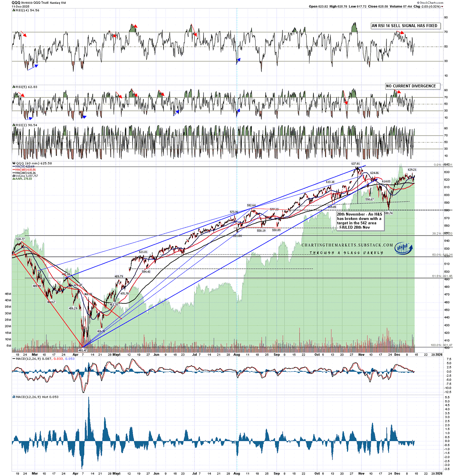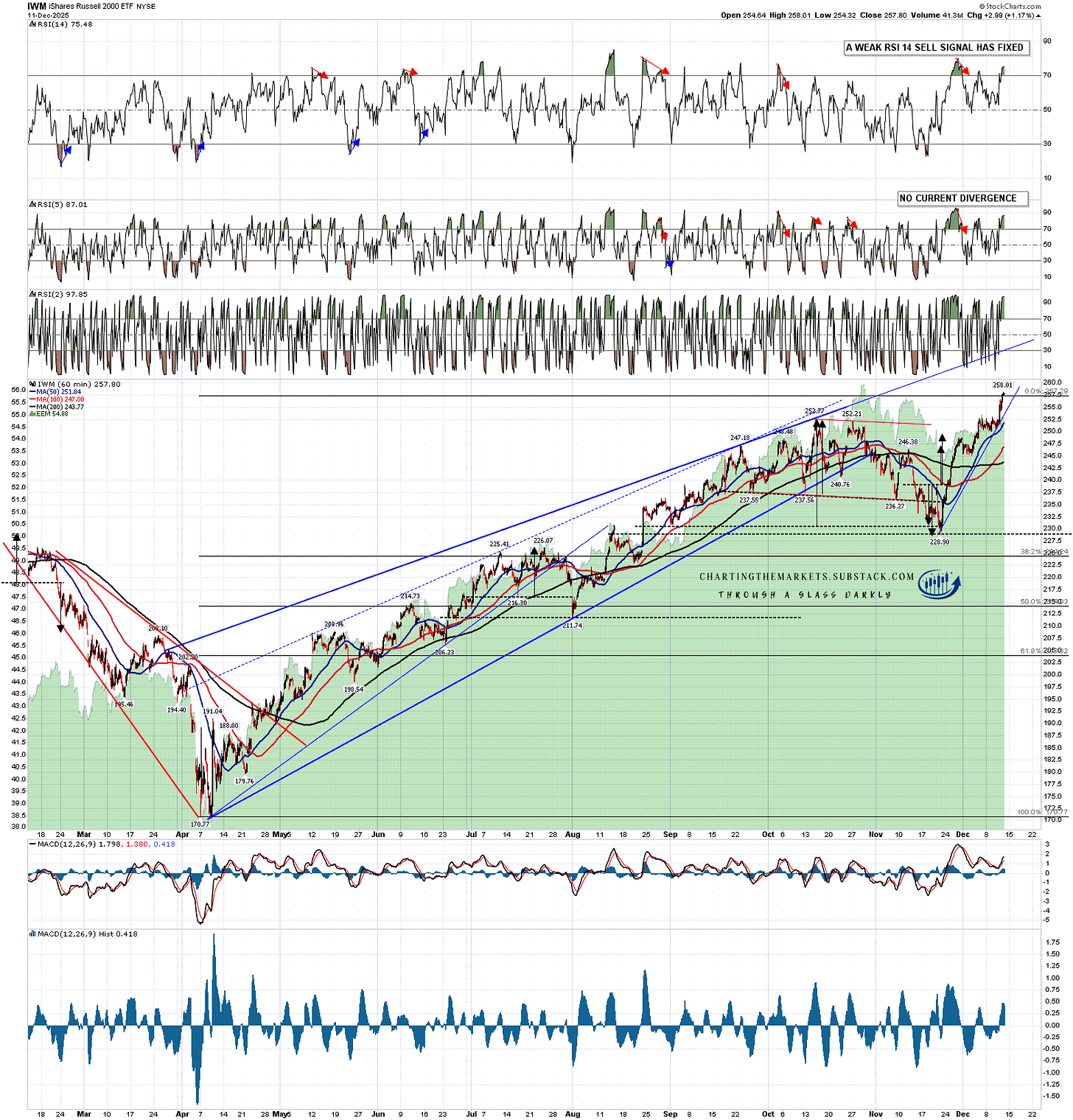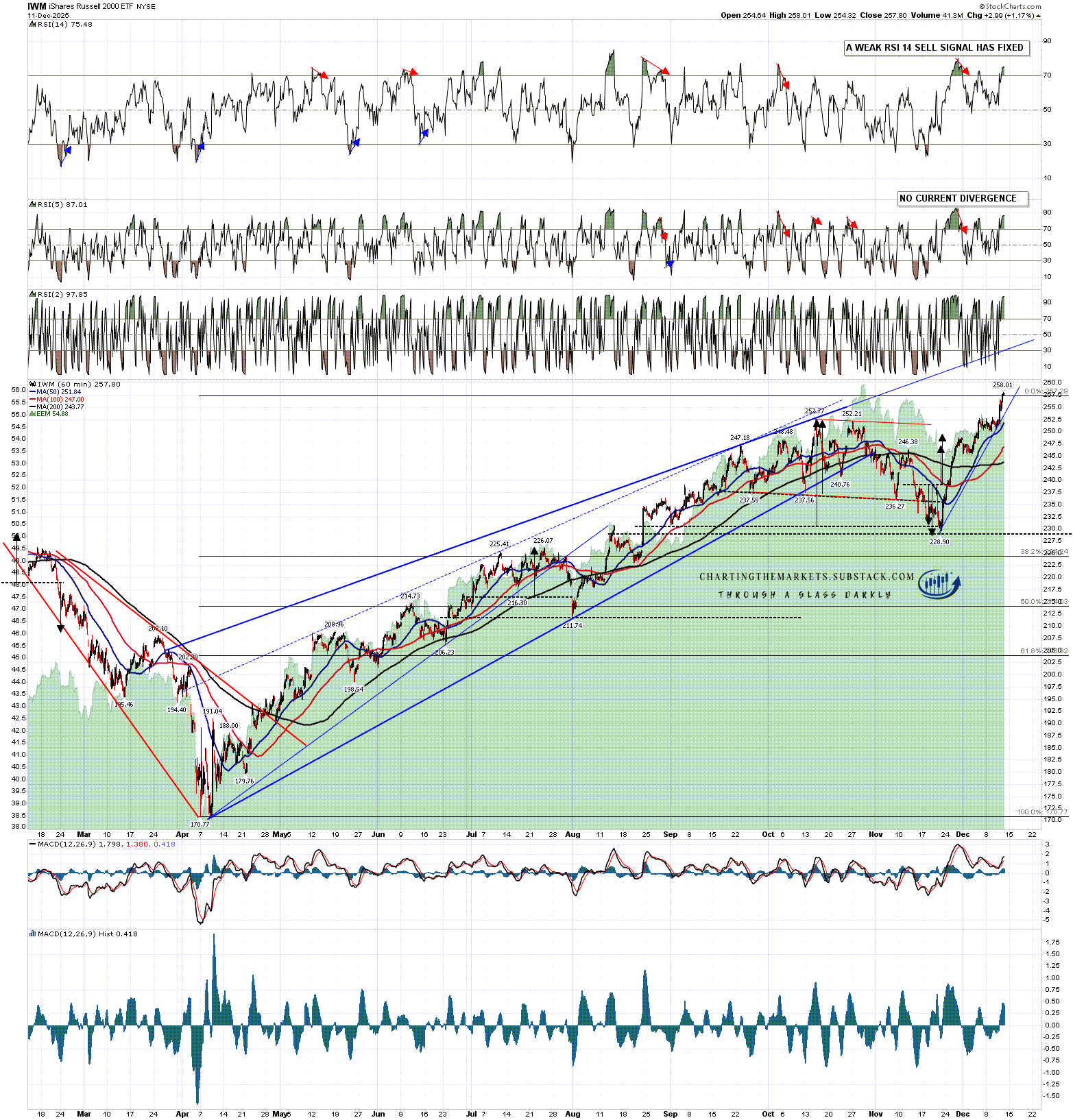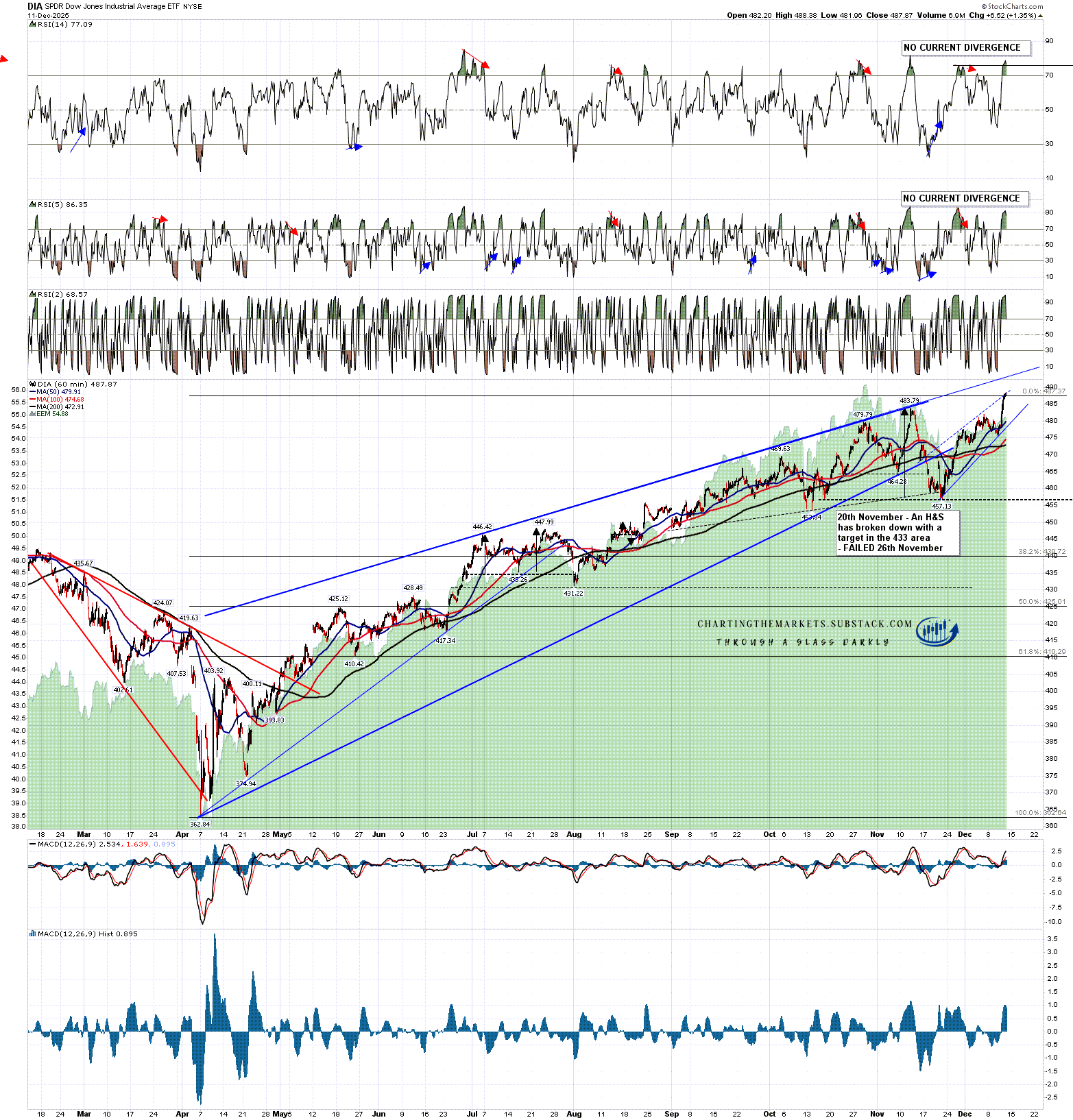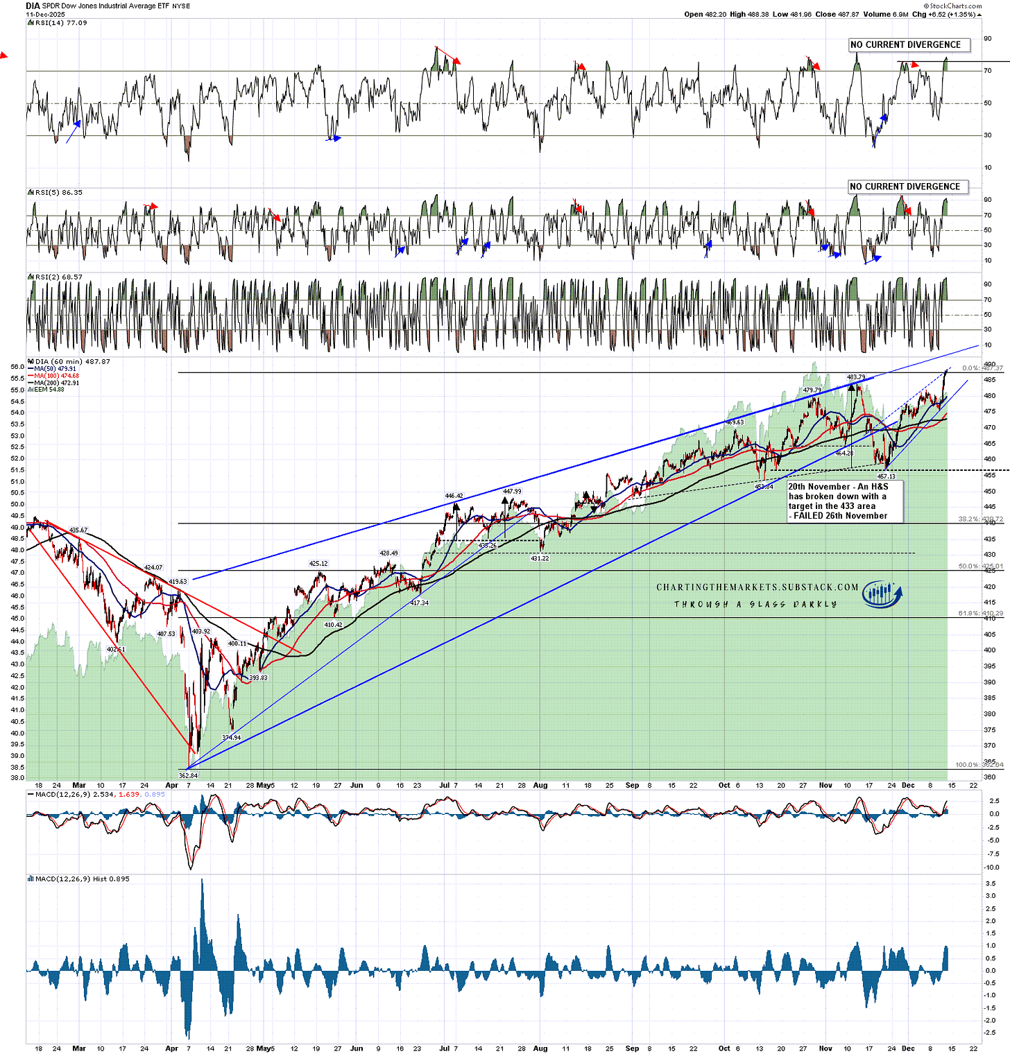 There is an hourly RSI 14 sell signal fixed though that could fail as equities trickle higher towards Xmas. The equivalent sell signal on DIA failed yesterday.