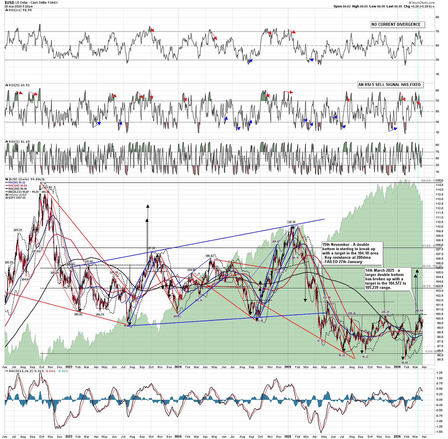 What was interesting though was what happened on USD, which was at about 95.5 at the time of the 2022 invasion, and then started a very strong move up into the 114.78 high in September. Given that USD was at 97.25 at the start of the Iran War, it would take a smaller move on USD now to retest that high.