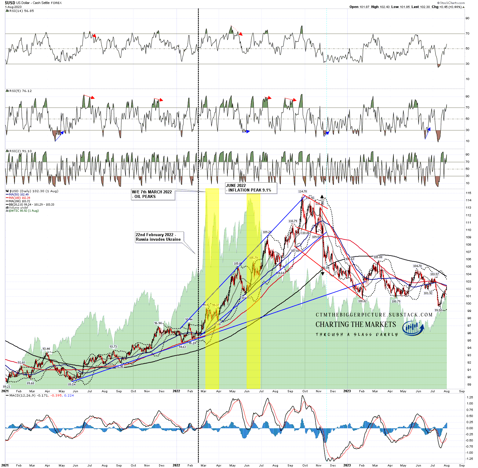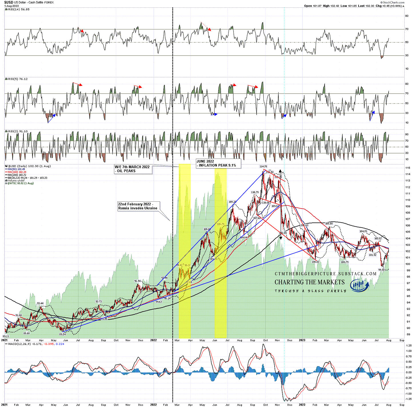 I’m thinking the whole bullish setup may play out over the next few months into a retest of that 2022 high at 114.78, and to show you why, I’m going to start with a close look at USD in 2022 after Russia invaded Ukraine on 22nd February.
