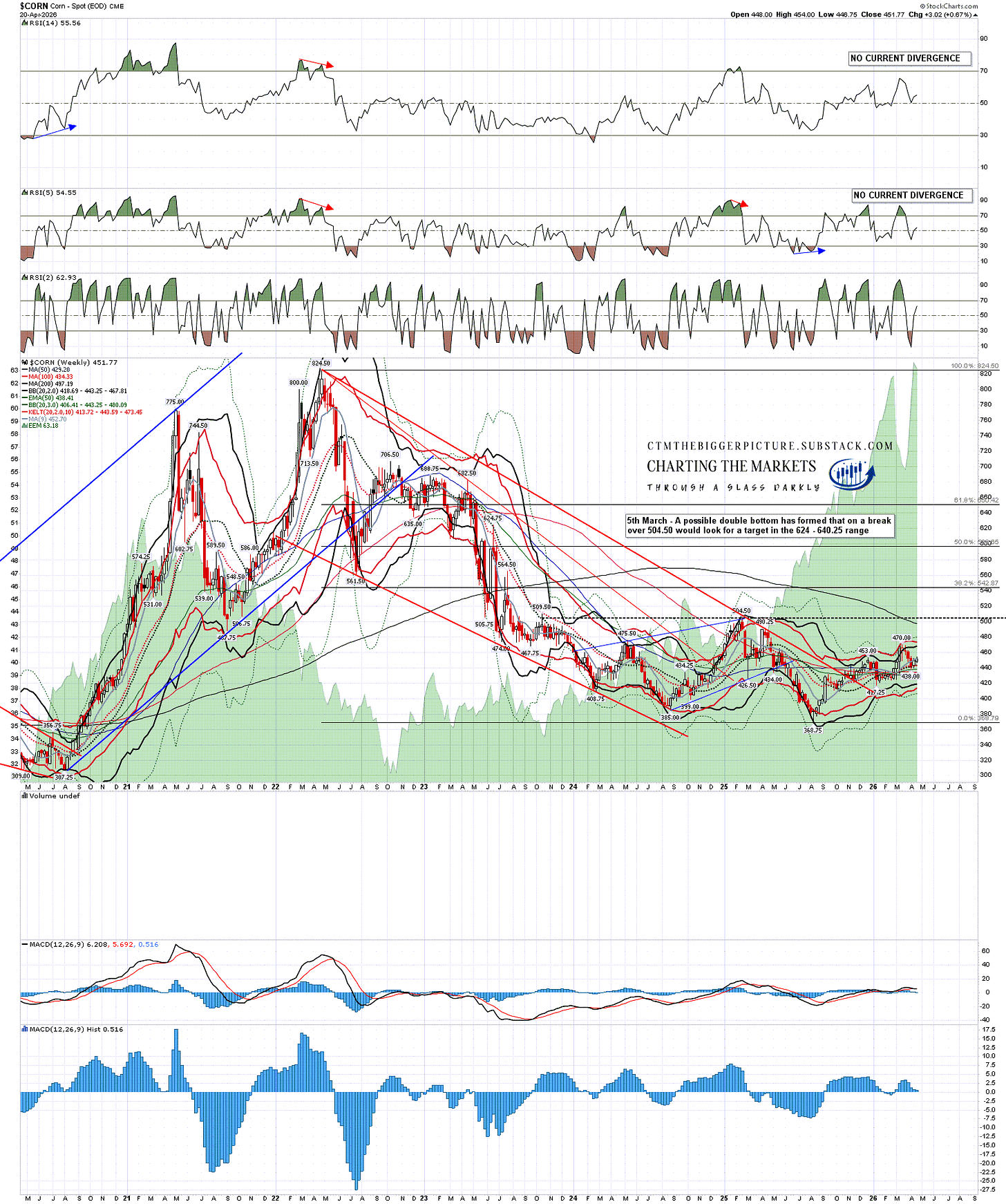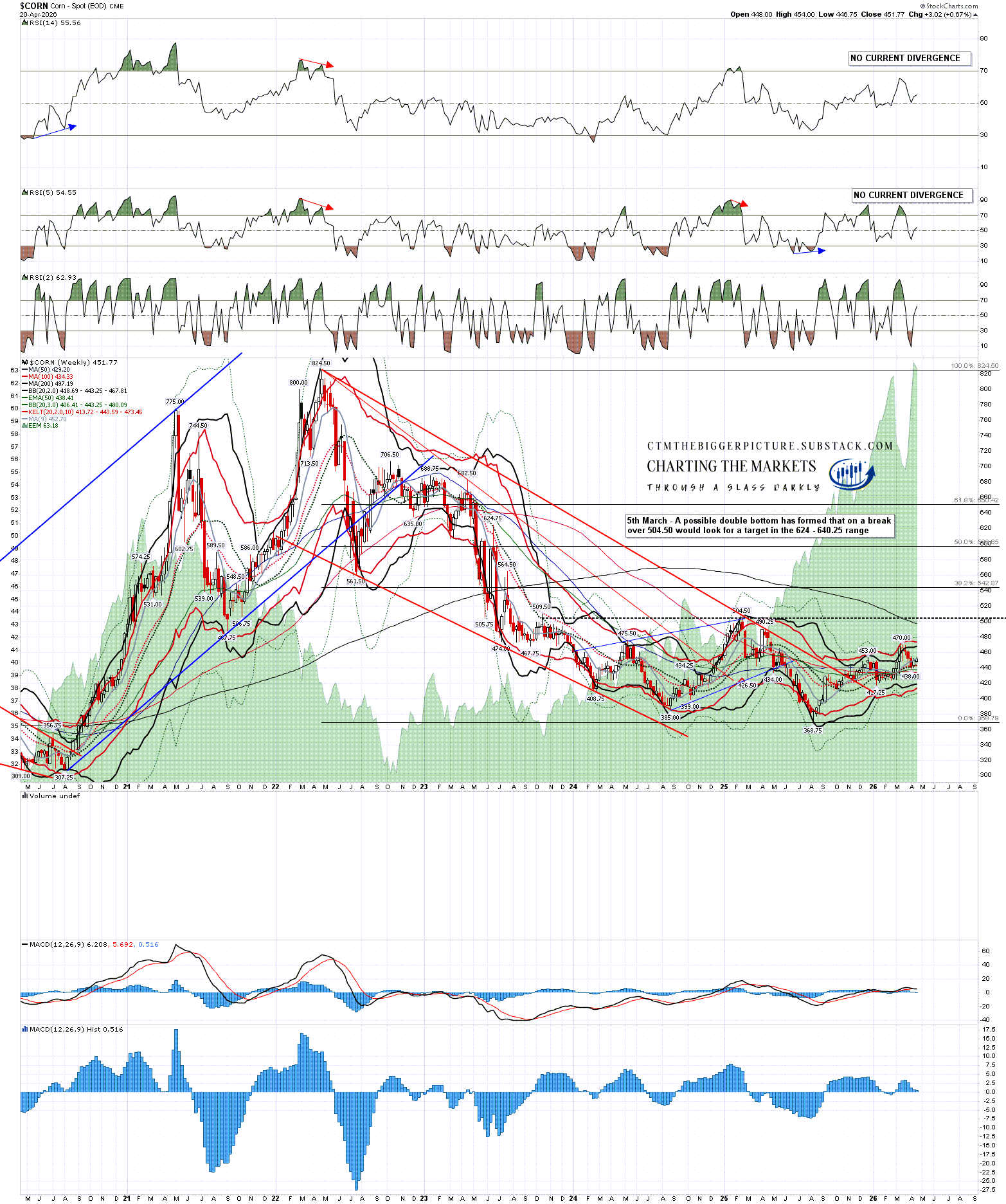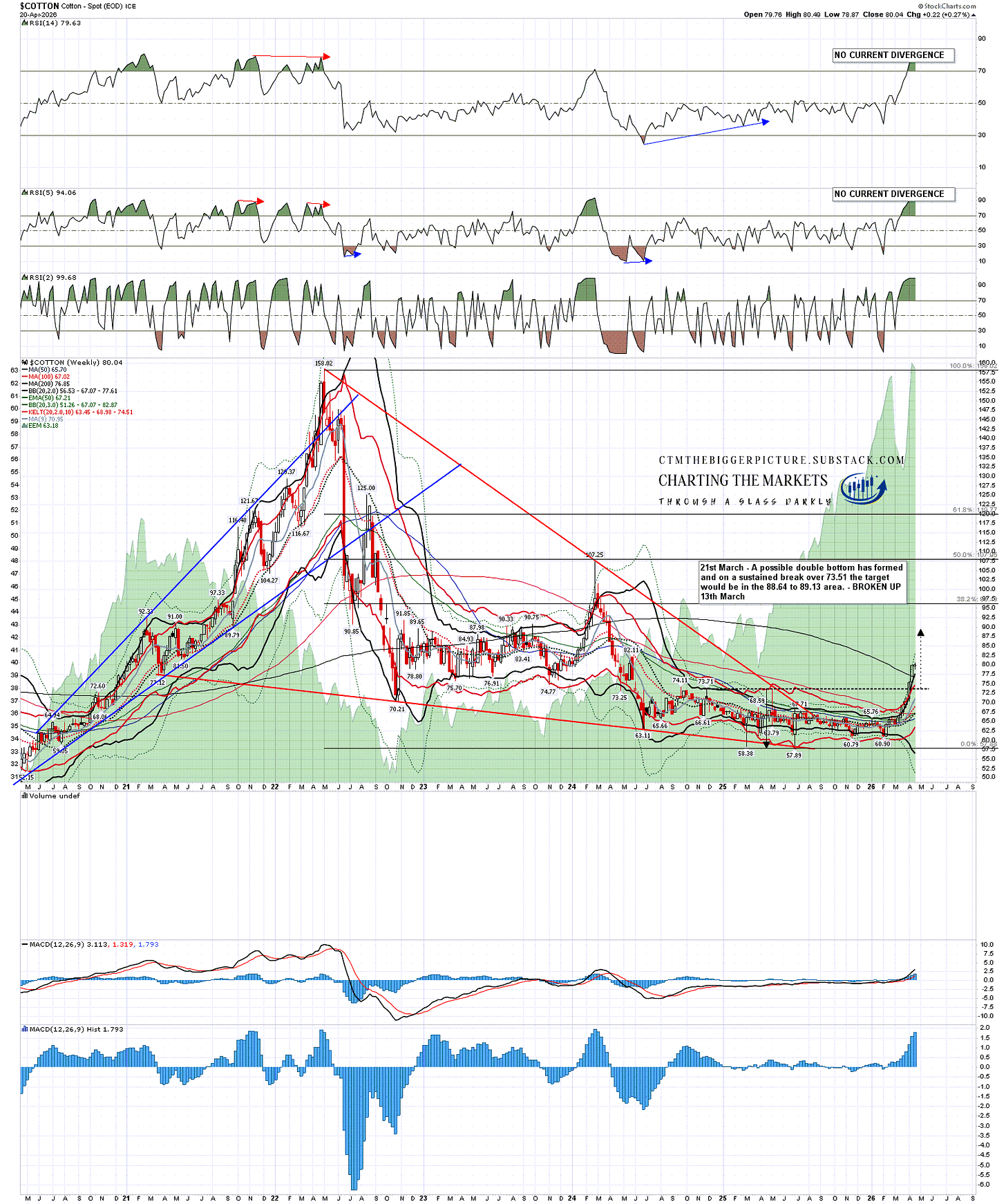 To a large extent these setups are just routine retracements of their big moves down from the major highs made in 2022, and they are very possibly not dependent on a further escalation of the Iran War. These moves may already be baked in from the disruption of the last few weeks affecting the crops to be harvested over the next few months.